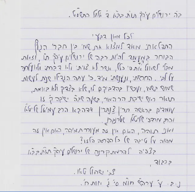 "כי עתה הגדילו שנית לעשות שימוש בשמי ועכשיו בהדביקם לו, שלא בצדק ולא באמת, תואר ראש ישיבת הר המור בשעה שבה ישיבה קדושה זו עומדים בראשה הרב עמיאל שליט"א והרב מרדכי שליט"א. אני תוהה, האם אין זה מעורר תמיהה, האם אין זה מראה על טיבה של כל הפרסה הלזו? בצפיה להרמת קרנה של ירושלים עיהק תובב"א".
