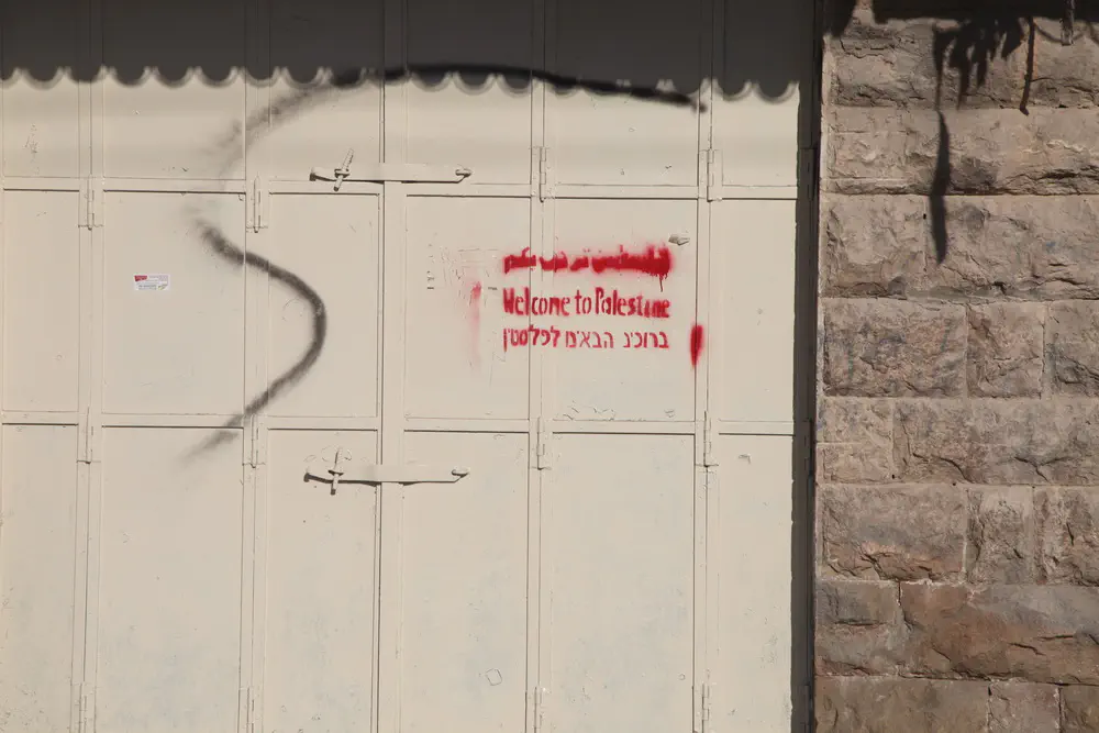 כתובות נאצה אנטישמיים רוססו ברחוב דוד המלך בחברון. בין השאר נרשמו הכתובות: No Zionist here ו"ברוכים הבאים לפלסטין".