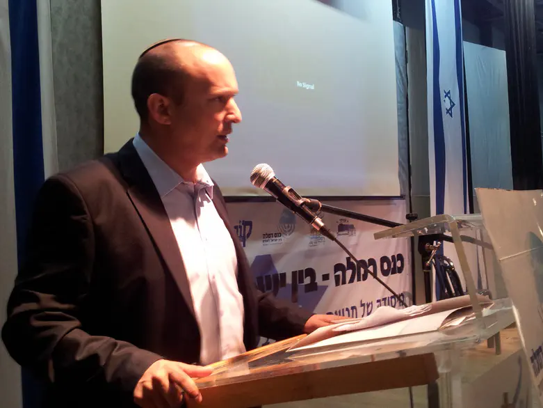 "אני רק מבקש מאחיי החרדים שילמדו מקצוע מועיל ומכניס. אל תלמדו משפטים", הוסיף בנט לקול צחוקם של השומעים.