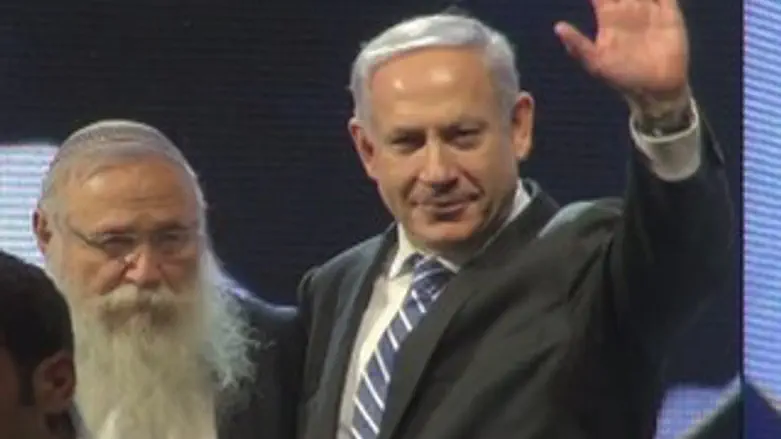 האולם מחא כפיים. ביבי, הערב, רוצה לדבר מהלב. אני כבר לא יודע מה זה לב אצל פוליטיקאים, בתום עונת הבחירות הזו. אולי פשוט יש להם שני לבבות ("בכל לבבך") או יותר ובכל פעם הם מדברים מלב אחר. בכל מקרה, ביום ראשון בערב, באולם הגדול בבנייני האומה, נתניהו העיף הצִדה את הדפים, ואמר בחום: "אני רוצה לברך את השרים ואת חברי הכנסת ואת הרבנים ואת התלמידים והתלמידות ואת הבוגרים והבוגרות ואת יקירנו, הרב דרוקמן, בהגיעך לשמונים, לגבורות! (מחיאות כפיים נלהבות בקהל) אנחנו כולנו מברכים אותך בברכת עלה והצלח. תראה, גיל שמונים במשפחתי זה לא משהו מיוחד, עוד היד נטויה והדרך ארוכה... אני רוצה למלל את גבורותיך, ולציין כמה הישגים: את ההישג הראשון שלך אנחנו רואים כאן באולם, וגם מחוץ לאולם: הבוגרים שלך! (מחיאות כפיים נלהבות עוד יותר). אני הייתי לאחרונה בטקס סיום קורס טיס והייתה שם טייסת דתייה, מאולפנא של בני עקיבא, זה משהו מופלא! (רק חלק מהקהל מוחא כפיים). הייתי בקורס חובלים וראיתי בוגרי שייטת דתיים. אני לא בטוח מה הם עושים עם הכיפה במים, אבל בכל מקום שאני הולך, בצה"ל, בכלכלה, בעסקים, במדע, בטכנולוגיה, בציבוריות שלנו, בממשלה, בכנסת, בכל מקום. גם בלשכה שלי, גם בבית שלי, במשפחה, אני מוקף בכיפות סרוגות... זו כיפת הברזל. ואנחנו נהנים מהעבודה שאתה הובלת ואתה מוביל במשך שנים רבות, אנשים שמהווים היום שדרת עשייה ומנהיגות בכל מדינת ישראל. אין תחום שאין שם את בוגרי המוסדות של בני עקיבא".