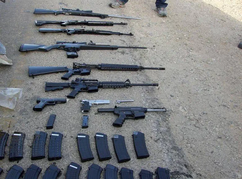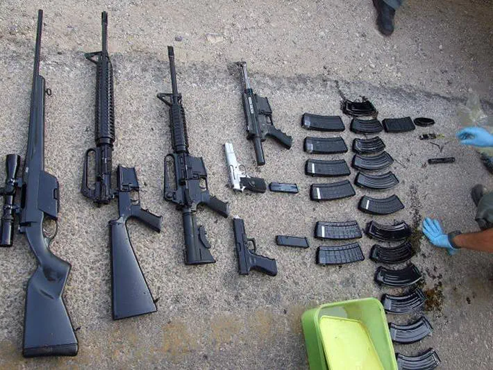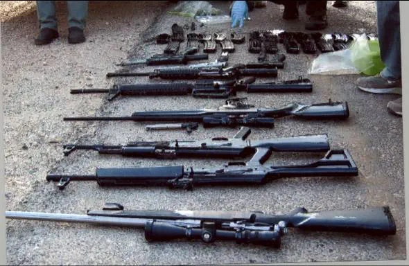 כן היו במקום מאות כדורים, עשרות מחסניות. רובה הצלפים היה אחד המשוכללים הקיימים. הנשק הוברח מארה"ב במכולה. אקדח נוסף הוברח במטוס כשהוא מפורק - בטיסה של בריטיש איירווייס. האקדח שהוברח במטוס שימש לשתי הרציחות הראשונות. לדבריו האקדח הוחבא ליד בית-החולים שערי צדק. אולם בחיפושים לא נמצא האקדח, בגלל שינויים שנעשו במקום.