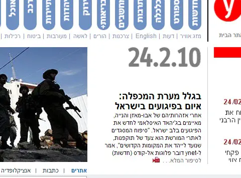 ב-YNET קונים באופן כל כך גורף ומוחלט את טענות הפלשתינים נגד מפת המורשת החדשה עד שמצאו שם לנכון לזכות את גולשי האתר בכותרת "בגלל מערת המכפלה: איום בפיגועים בישראל".