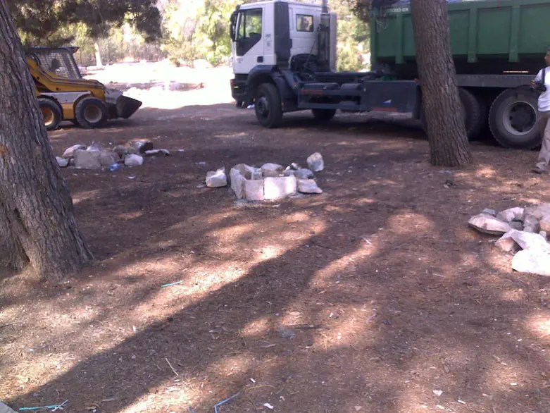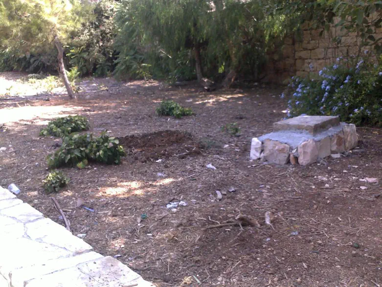הטרקטורים פרקו מהמשאית אבנים גדולות, עיצבו אותם כריבועים והניחו אותן על האדמה כמצבות, על אף שעד כה לא היו שם כל קברים, אלא אדמה ואף חלקות דשא.