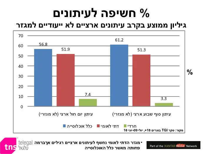 פחות זמן קריאה בעיתונות יומית לעומת כלל האוכלוסייה אבל יותר לעומת חרדים.