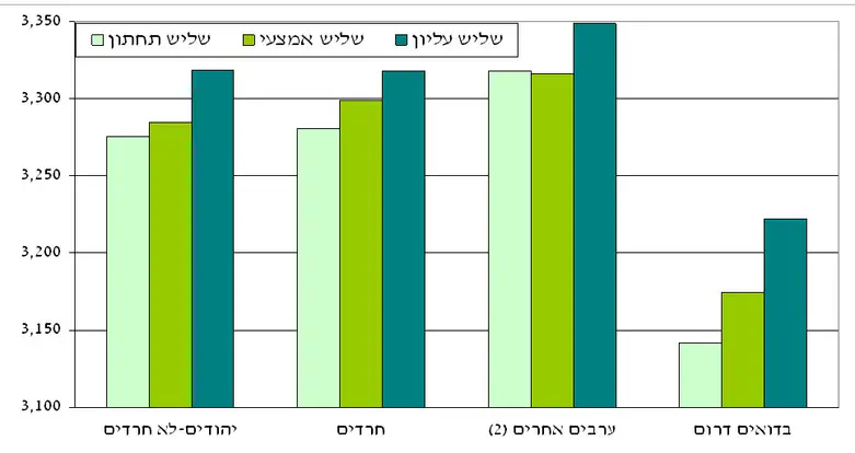 ממצאי המחקר מלמדים שישנו מתאם בין משקל היילודים וההכנסה המשפחתית: משקלם של יילודים להורים מהשליש העליון של התפלגות ההכנסות גבוה בכ-30 גרמים (כאחוז אחד ממשקל יילוד ממוצע) ממשקלם של יילודים להורים מהשליש התחתון של ההתפלגות (ראה איור). משקלם של יילודים למשפחות של בדואים בדרום הארץ, אוכלוסייה שהיא ענייה מאוד, נמוך בכ-120 גרמים ממשקל יילודים בקבוצות אוכלוסייה אחרות. בדיקה מעלה שהפער נובע, בין השאר, מנישואי קרובים וייתכן שגם מנגישות נמוכה לשירותים רפואיים ואחרים.