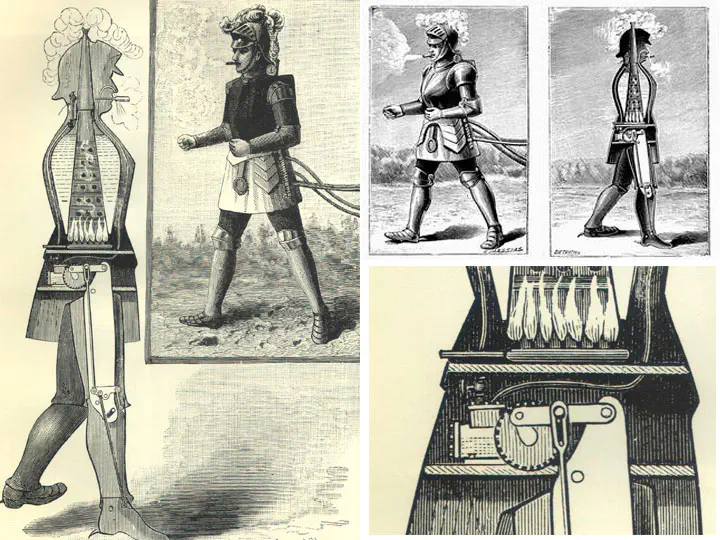 לקראת המאה ה-19 החלו לקבל תפוצה מכונות מונעות חשמל וקיטור. ממציא קנדי ג'ורג' מור הציג בשנת 1893 את ה"איש המעשן" שהשתמש בדוד קיטור לתנועה והיה מסוגל לנוע עד תשעה מייל לשעה.עוד "איש החשמל" הוצג לעולם במגזין Strand ב-1900 בידי הממציא לואיס פיליפ פריו.