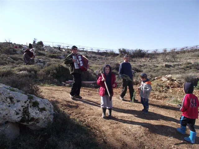 ומן הטכס – כל הנוכחים עברו לשלב המעשה. מאות שתילי גפן, זית, אקליפטוס ואורנים ניטעו באדמות המדינה מלווים בנגינת אקורדיון עם שירים של ארץ ישראל הישנה והטובה.