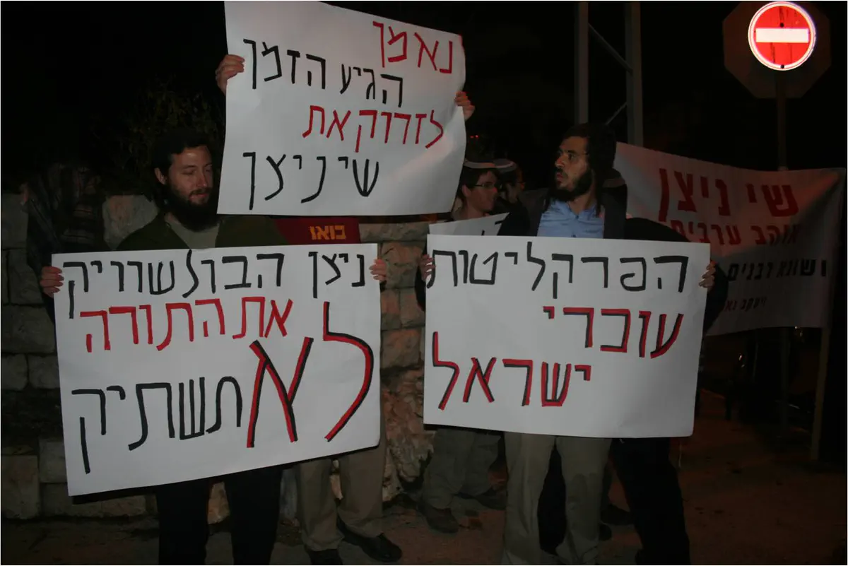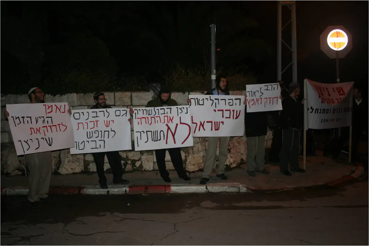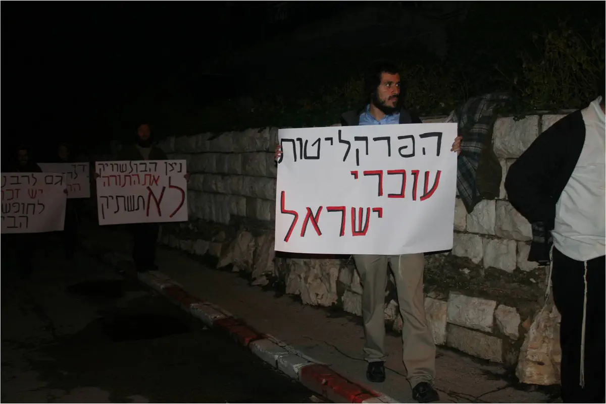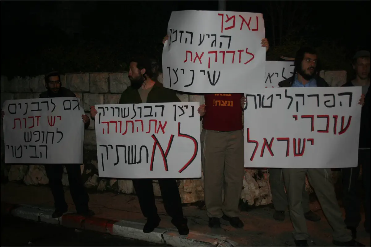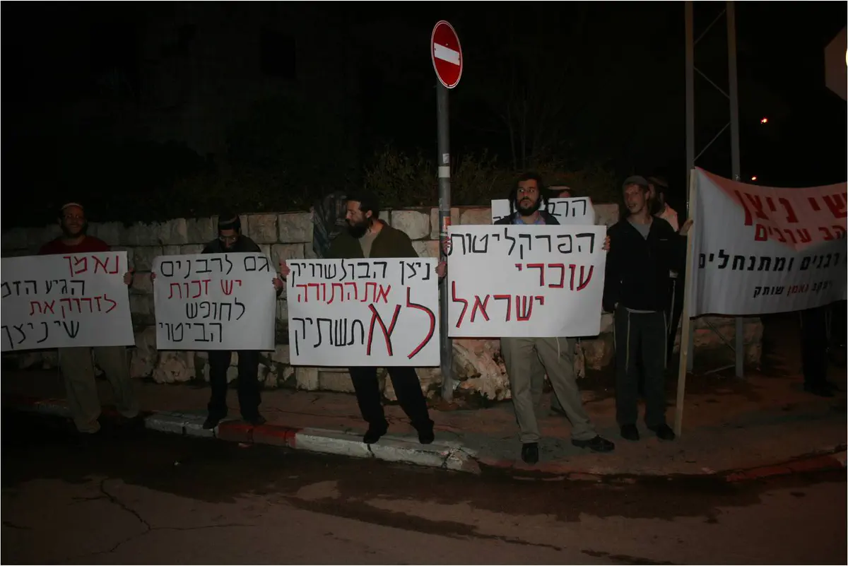 נאמני ארץ ישראל הפגינו אמש (חמישי) מול בית השר נאמן, בעקבות צווי המעצר שהוצאו לרבנים שחתמו על ההסכמה לספר "תורת המלך".