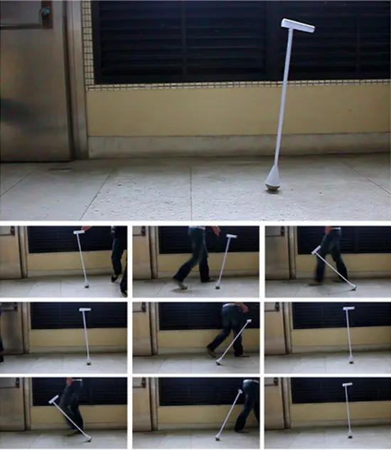 המקל בנוי בצורת צינור ריק ומשקולת בקצהו התחתון (לנשיאה קלה יותר הקל המעצב בצורה מירבית על החלק העליון של המקל). כאשר המקל מוטה לצד, מתחיל לפעול כוח ההתנגדות אשר מחזיר את המקל למצב מאונך. הזקוק למקל הליכה יכול לעזוב אותו בכל מצב והמקל פשוט יעמוד ליד.