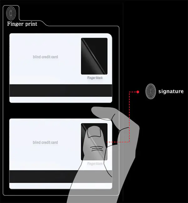 האבטיפוס החדש של כרטיס האשראי מאפשר הצבת סורק על דופן הכרטיס. בעל הכרטיס רק משאיר את טביעת האצבע, על הכרטיס המאשר את הבעלות. חתימה על החשבוניות איננה נדרשת. בעת רכישה יופיעו על צג מגע מיוחד פרטי העסקה בכתב ברייל.