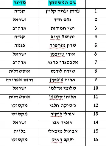 16 נערים ונערות מישראל ומהתפוצות עלו לגמר חידון התנ"ך העולמי לנוער יהודי, אשר יתקיים בירושלים ביום העצמאות ה-63, כמידי שנה.