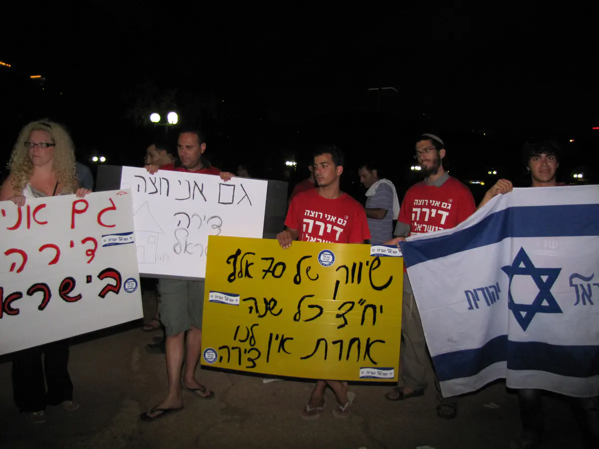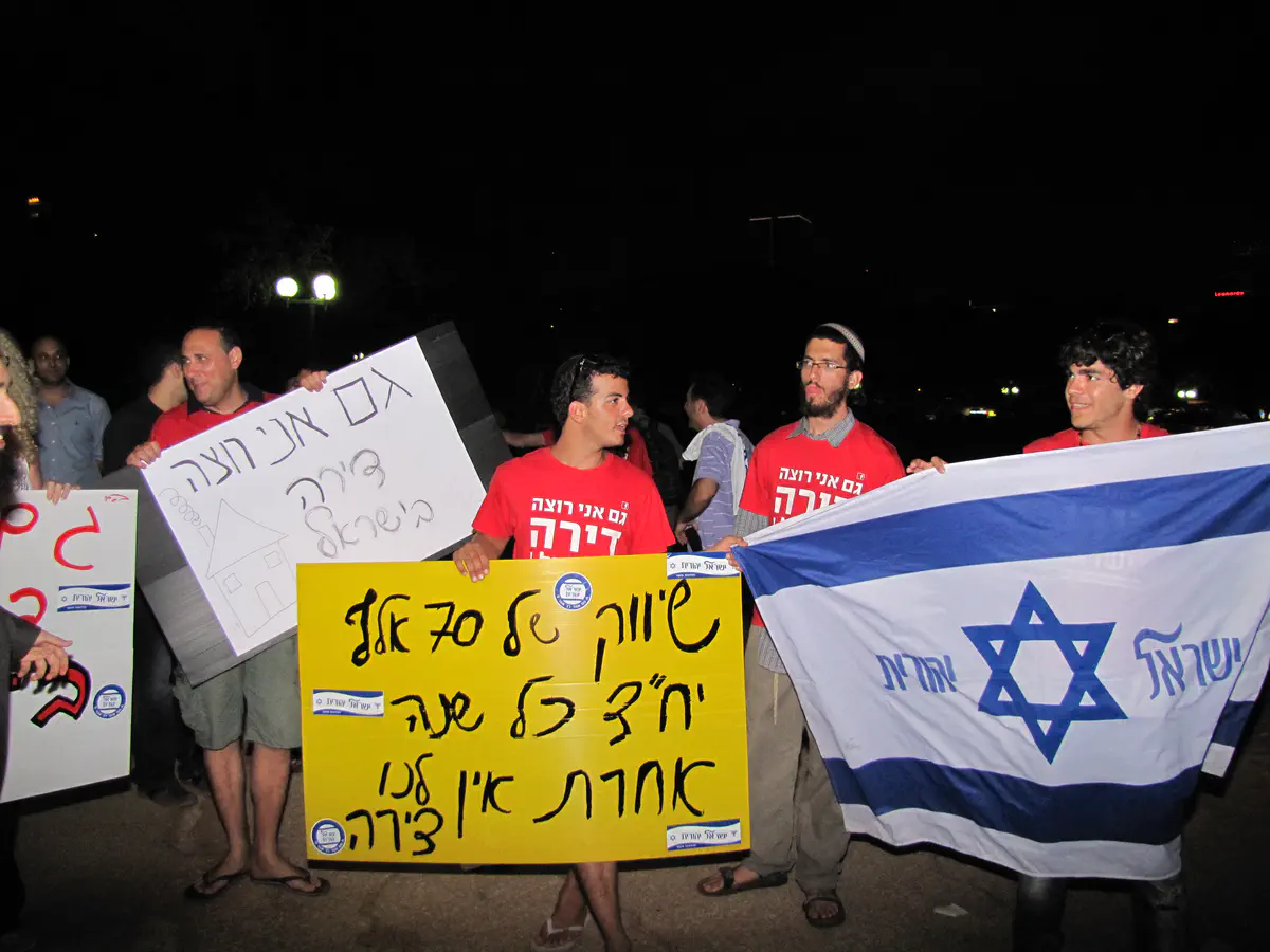 עשרות הפגינו אמש (חמישי) בכיכר המדינה בתל אביב במחאה על מצוקת הדיור בישראל תחת הכותרת "גם אני רוצה דירה".