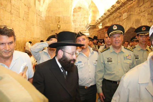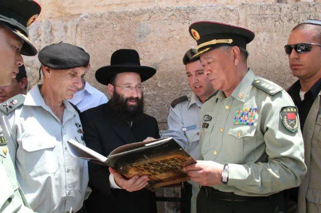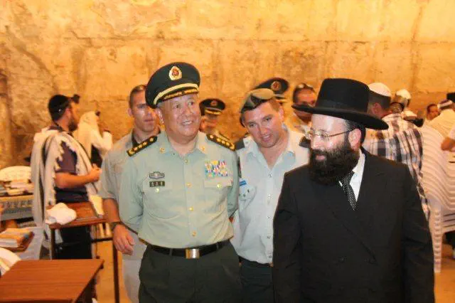 הרמטכ"ל הסיני צ'ן בינדג' ביקר אחר הצהריים (שני) ברחבת הכותל המערבי בראשות פמליה של מפקדים בכירים בצבא הסיני והתקבל על ידי רב הכותל המערבי הרב שמואל רבינוביץ.