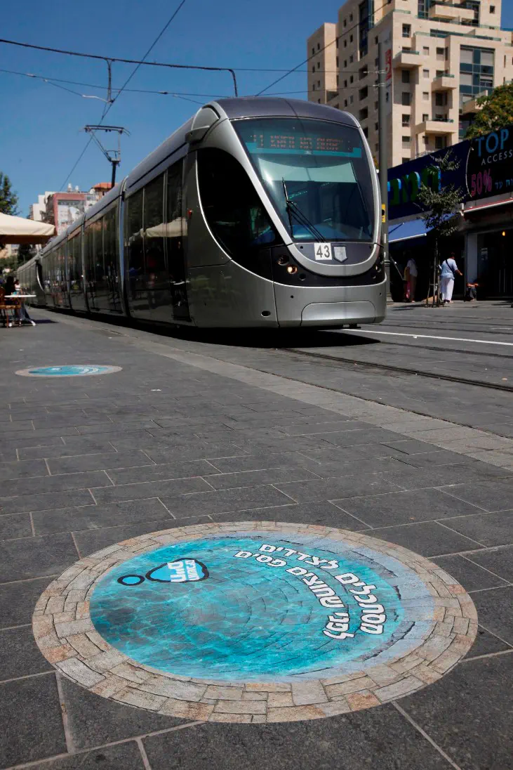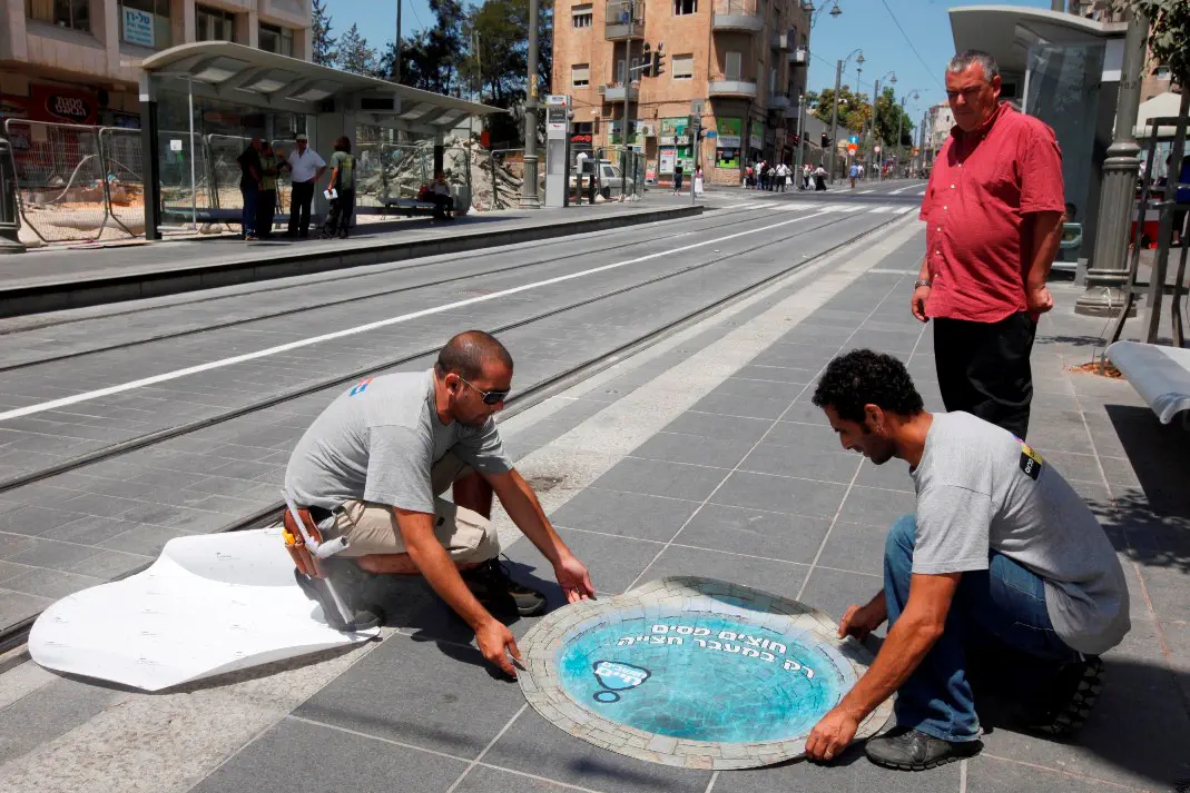במקביל, היום פרסה הרשות לאורך ציר רחוב יפו, שילוט רצפה תלת מימד, ראשון מסוגו בישראל אשר נוצר מתוך הצורך ליצור את ההפרדה התודעתית בין תוואי הרכבת לבין האזור הבטוח להליכה וחצייה המיועד להולכי הרגל, קוטרה של כל מדבקה הוא כמטר, השילוט הוכן בשפה העברית ובשפה הערבית.