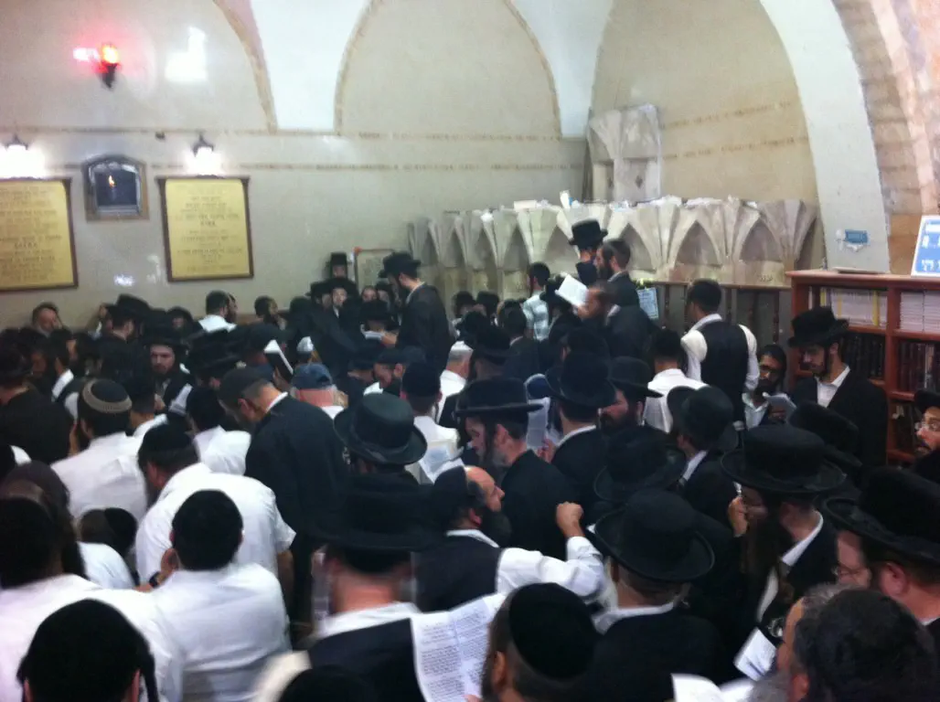 מאות מחסידי ברסלב הגיעו היום לתפילת 'יום כיפור קטן' של ערב ראש חודש אלול בקברו של התנא הקדוש ר' מאיר בעל הנס בטבריה.