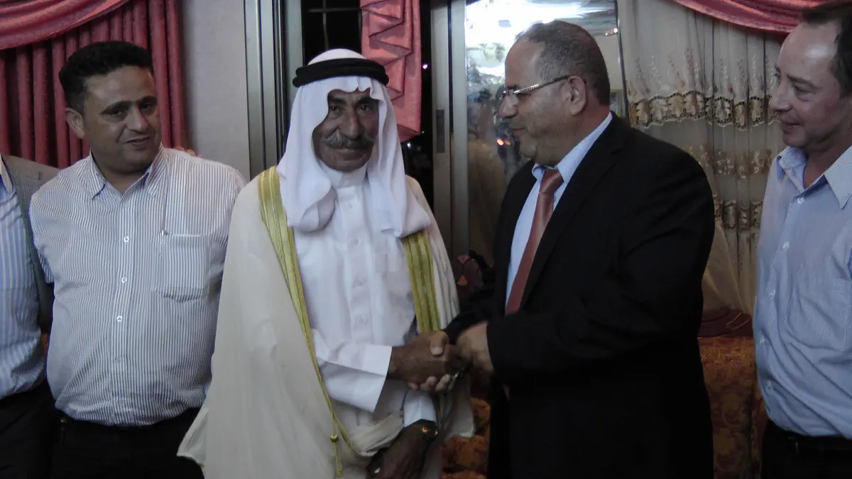 שייח' אבו חאדר ג'עברי, מוכתר חברון, וסגן השר איוב קרא שהוזמן על ידו לסעודת סיום הרמדאן, שוחחו אמש (שני) במהלך הסעודה על עניינים מדיניים, על האירועים האחרונים בעולם הערבי ועל ההכרזה הצפויה על מדינה פלסטינית.