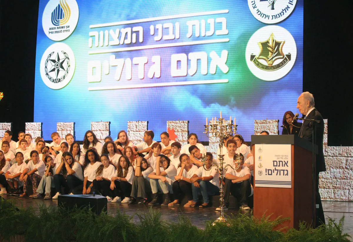 "מדינת ישראל מחבקת אתכם היום ומברכת אתכם על כניסתכם לעול מצוות. בואו נתפלל יחד שמדינת ישראל לא תדע עוד מלחמה ושעתידנו יהיה עתיד של שלום", הוסיף פרס.