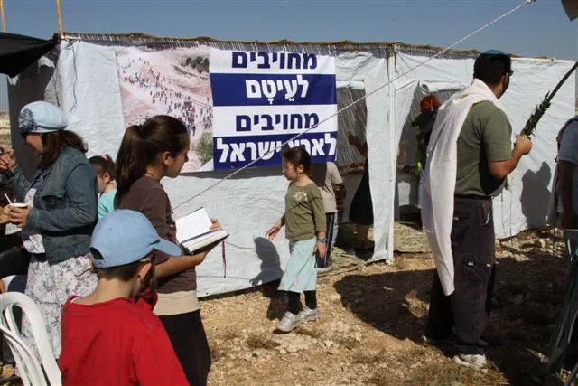 הרב שמעון גולן, חבר לשכת הרבנות, אמר בין יתר דבריו שבמקום שמוקמת סוכת ארעי- תשכון סוכת קבע ושכונת קבע בע"ה.