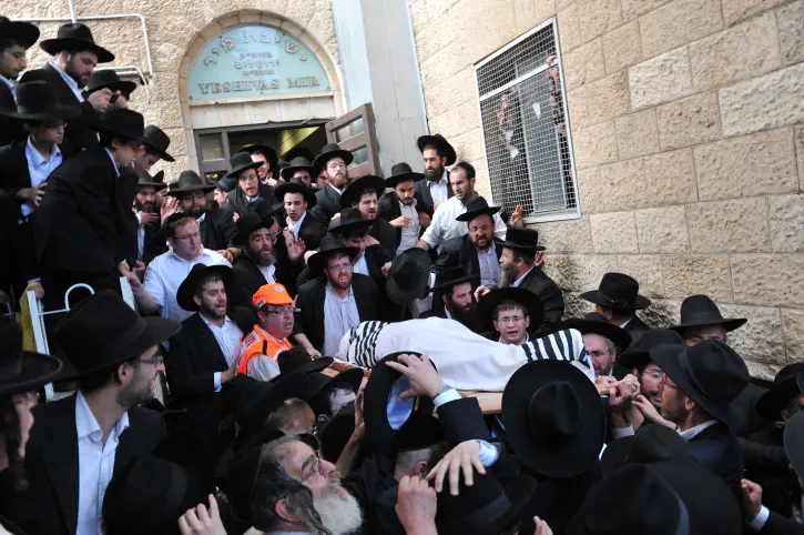 למעלה ממאה אלף איש גדשו את רחובות ירושלים כשהם מלווים את ראש ישיבת 'מיר' הרב נתן צבי פינקל זצ"ל למנוחות. ישיבת 'מיר' נחשבת הישיבה הגדולה בארץ, ולומדים בה אלפי תלמידים שרובם אברכים. צפו בתיעוד הלוויה. צילום התמונות: פלאש 90.