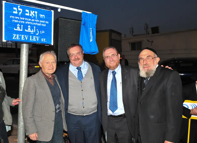 במעמד שר המדע הרב פרופ' דניאל הרשקוביץ ראש עירית ירושלים מר ניר ברקת, נשיא בית הספר הגבוה לטכנולוגיה בירושלים פרופ' נח דנא פיקארד, תעשיינים ומשפחת לב, נחנך היום (שלישי) רחוב ע"ש מייסד בית הספר הגבוה לטכנולוגיה בירושלים פרופ' זאב לב ז"ל.