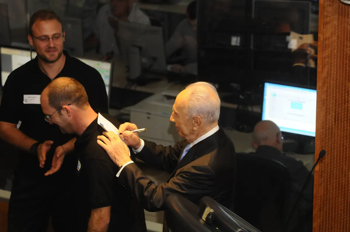 הנשיא נפגש במתקן התעשייה האווירית ביהוד עם יזמי הפרויקט ומדענים ישראלים צעירים המשתתפים בתחרות העולמית וקיבל סקירה מקיפה של תהליך בניית החללית והתקדמות הפרויקט. כל זאת, במטרה לעמוד באתגר העצום ולהפוך את ישראל למדינה ה- 3 שתנחת ותציב את דגלה על הירח. הנשיא הסיר יחד עם רונה רמון ושלושת המדענים העומדים בראש הפרויקט את הלוט מדגם החללית וצירף לחללית קלף עליו צוטט הפסוק "והיו למאורות ברקיע השמיים להאיר על הארץ" (בראשית א': טו) אשר ילווה את החללית בדרכה לירח. ובתמורה אף קיבל מהם כרטיס טיסה לירח.