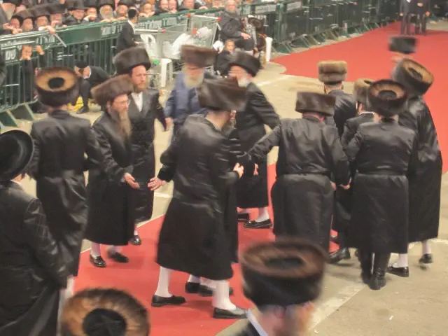 הרב שרוליק איצקוביץ מחסידות ויזניץ ליווה את ערוץ 7 במהלך החתונה והסביר כי בגלל שמדובר בנינו של האדמו"ר, כל החסידים כולם מקיימים מנהגים שנהוגים בחתונה של קרוב משפחה, כמו לבישת שטרעיימל וגרביים לבנות מעל המכנס.