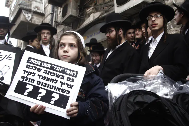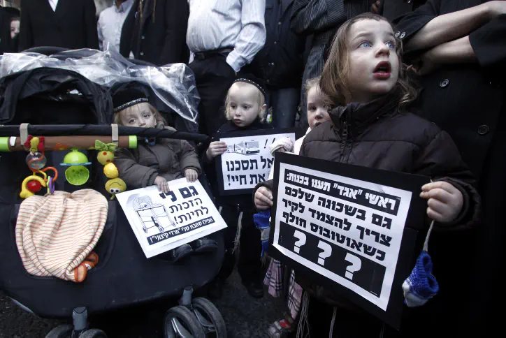 ילדי מאה שערים החזיקו שלטים נגד החזרת האוטובוסים. בשלטים נכתב "אנא אל תסכנו את חיי", "גם לי הזכות לחיות אפילו שאבא שלי חרדי קיצוני", "ראשי אגד תענו בכנות, גם בשכונה שלכם צריך להיצמד לקיר כשאוטובוס עובר?".
