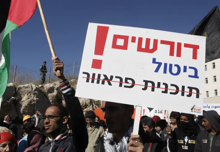 המפגינים קראו קריאות לאומניות שונות, ובין השאר אף הניפו את דגל אש"ף. לטענת המפגינים, מדובר בתוכנית גזענית שתעקור עשרות אלפי בדואים מבתיהם ללא הסכמתם.