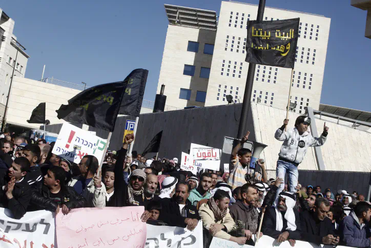 אלפי בדואים הפגינו הבוקר (ראשון) מול משרד ראש הממשלה בשעת ישיבת הממשלה, במחאה על אישור המתווה לביצוע מסקנות ועדת גולדברג, לישוב תביעות הבדואים לזכויות בקרקעות הנגב.