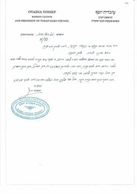 הרב עובדיה הסכים לשחרור ושלח איגרת ברכה לנשיא צרפת ניקולא סרקוזי. באיגרת כתב הרב "כבוד מכובדי הנעלה מר ניקולא סרקוזי, שיחיה לאורך ימים ושנים, נשיא מדינת צרפת. אני מאשר בזה את מכתבי באמצעות שגריר צרפת בישראל בו מבקש כבוד הנשיא לשחרור האסיר סלאח חמידי, ולאור הערכתי הרבה לכבוד הנשיא, ואת יחסיו הלבביים והמצויינים עם העם בישראל ועם אחינו היהודים בני ישראל תושבי מדינת צרפת, אני נעתר לבקשתו".