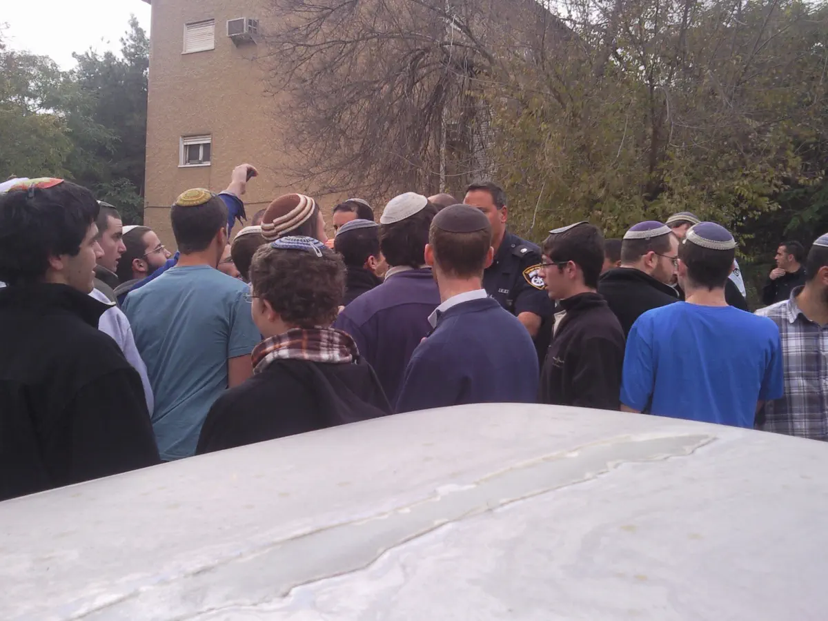 במקביל נאספו סביב הבית בני נוער וצעירים רבים שהחלו להתעמת עם השוטרים. במהלך העימותים נופצו שמשותיה של אחת הניידות וצמיגי שתי ניידות אחרות נוקבו. בהמשך האירוע הוצא מהדירה ארגז ובו רובי צעצוע.
