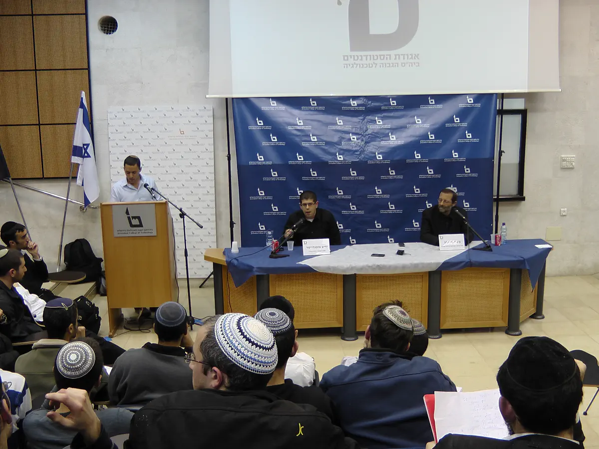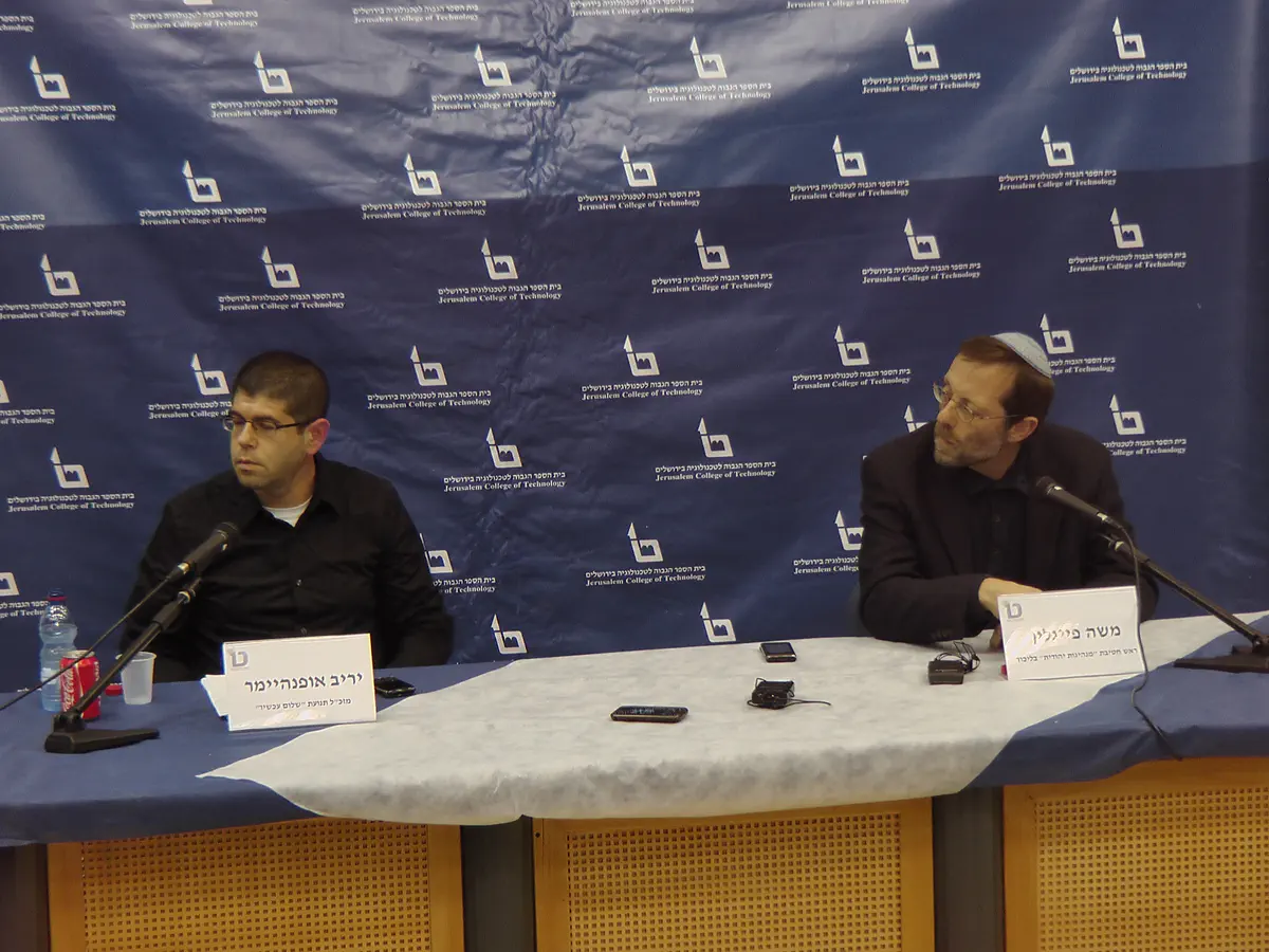 אגודת הסטודנטים של מכון לב קיימה הערב (שני) עימות בין המתמודד לראשות הליכוד, משה פייגלין, לבין מזכ"ל תנועת שלום עכשיו יריב אופנהיימר.