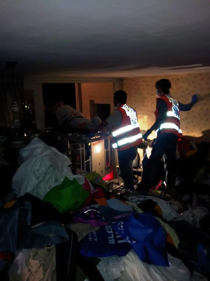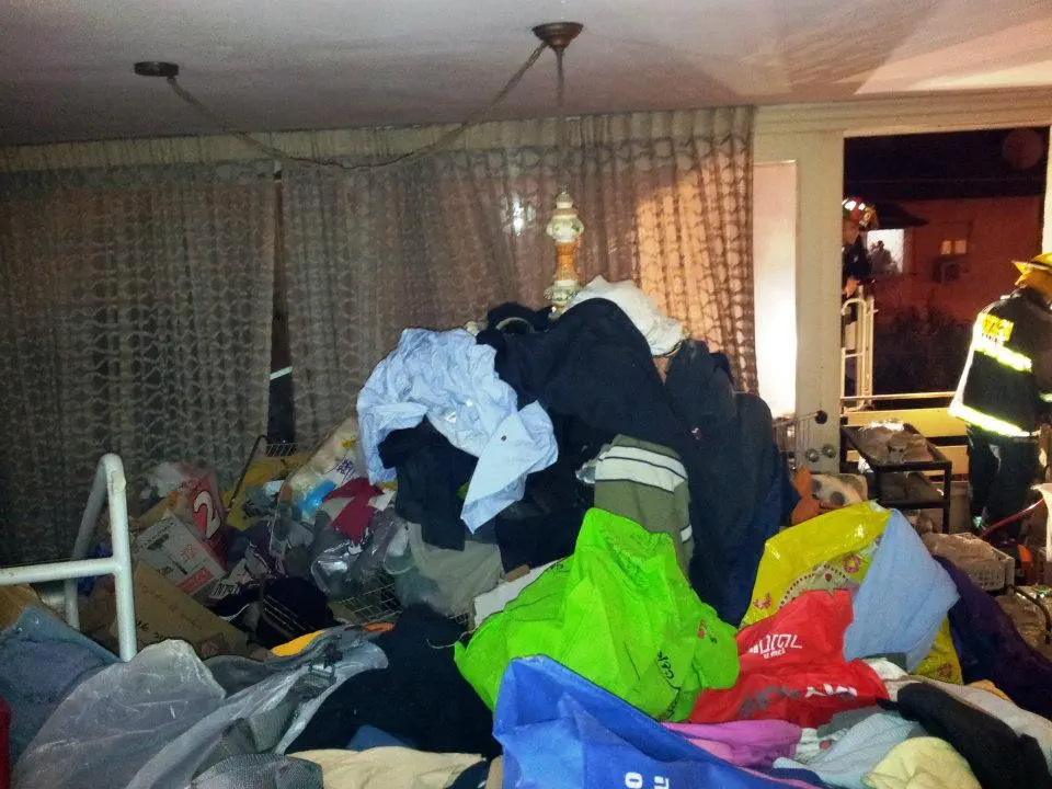 למקום הוזעקו כוחות גדולים של כיבוי, משטרה וכונני 'איחוד הצלה צוות דרור', כאשר נכנסו הצוותים לדירה הופתעו לגלות ערימות של בגדים, גרוטאות וציוד אשר מילאו את הדירה כולה בגובה של כחצי מטר.