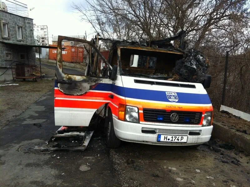 אמבולנס של זק"א התפוצץ בסוף השבוע סמוך לציונו של רבי נחמן באומן. המשטרה המקומית פתחה בחקירת המקרה, ועל פי דיווחים בתקשורת המקומית עולה חשד להצתה.
