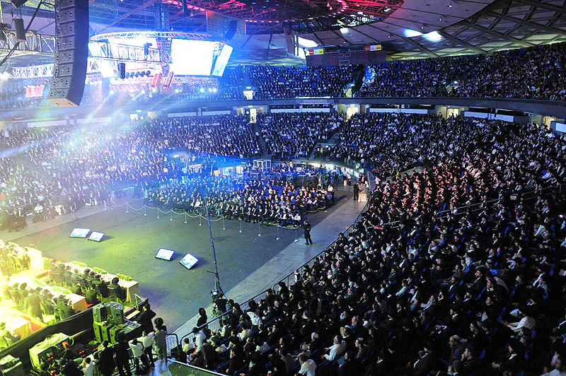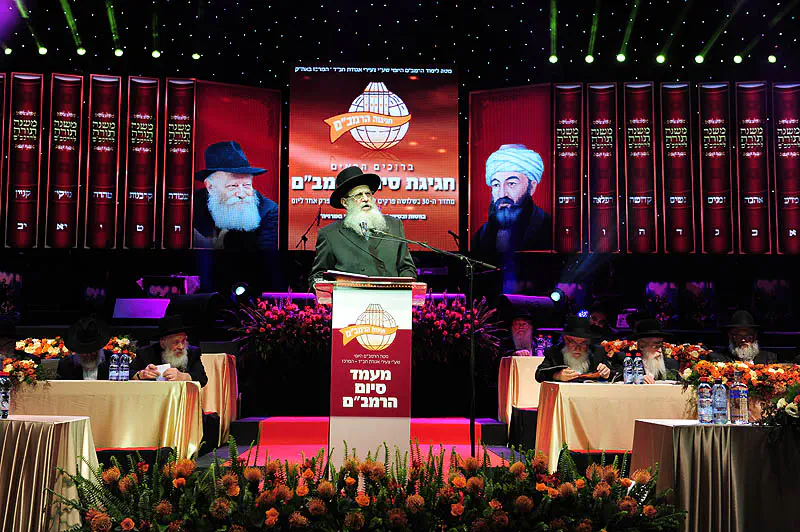 מי שנכח בהיכל 'יד אליהו' ביום שני בערב, י' בניסן, חש את גדולתו של המעמד העוצמתי והמרשים שהתרחש לנגד עיניו. האולם הענק היה גדוש מפה אל פה בעשרת אלפים איש, שבאו מכל קצות הארץ, לחגוג את סיום המחזור השלושים של הרמב"ם היומי, שהתקין כ"ק האדמו"ר מליובאוויטש זצוק"ל.