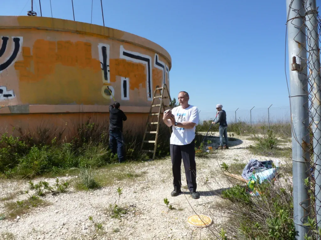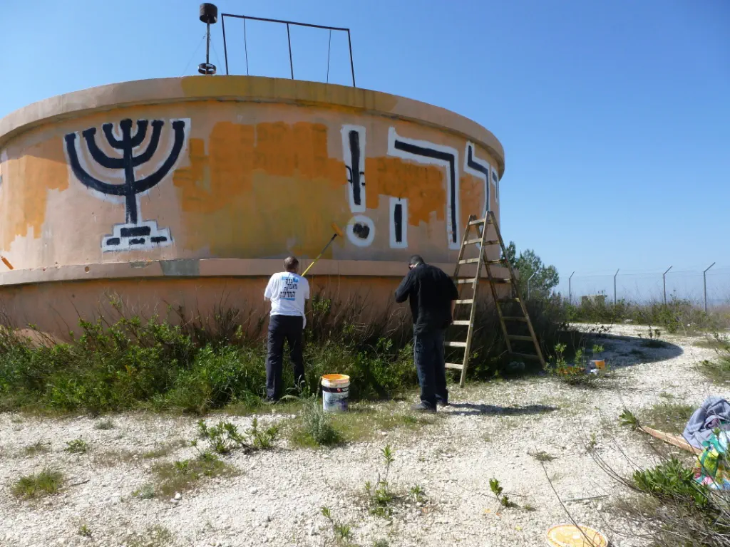 צוות של אנשי 'חומש תחילה' ניקו בימים האחרונים את כתובות הנאצה וצלב הקרס מקירות בריכת המים שבחומש.