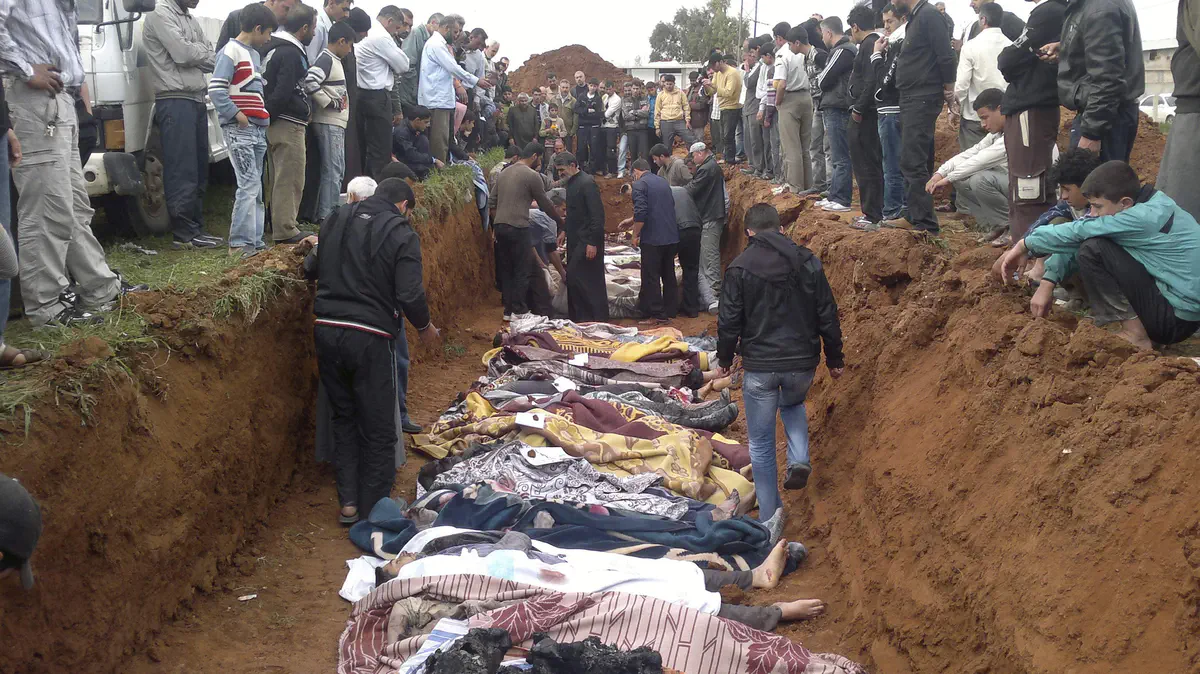 בחלב נמסר על יותר מעשר גופות שרופות שהתגלו שם לאחר הפגזה כבדה על אחד מהמבנים שנשרף כליל.