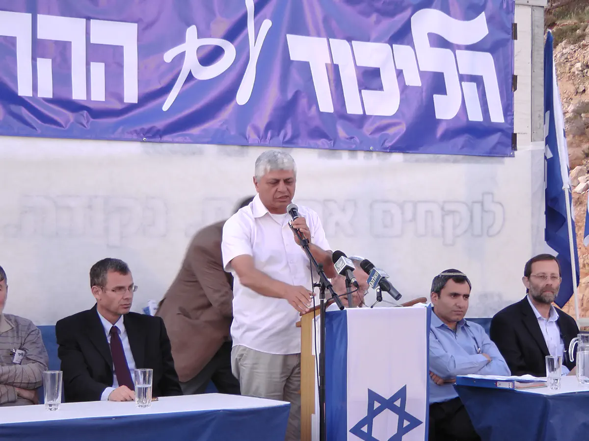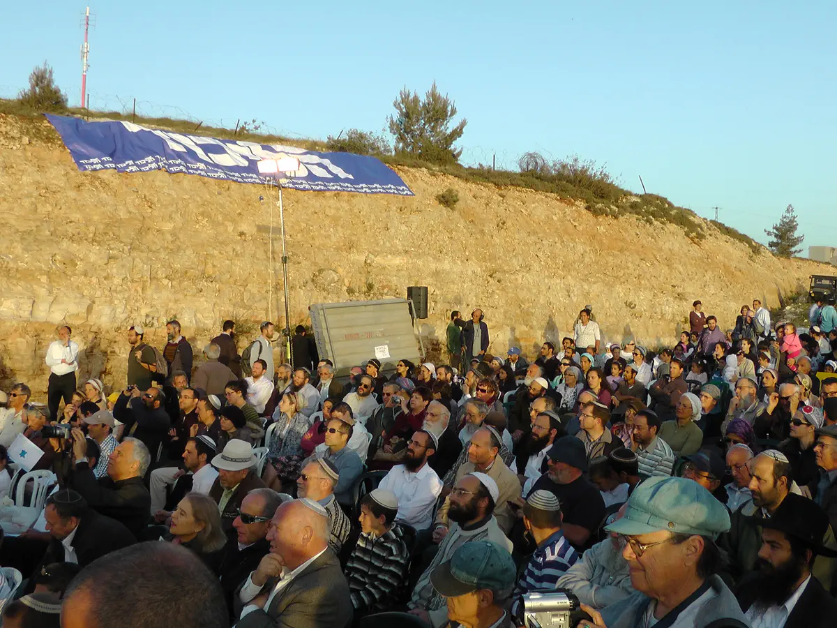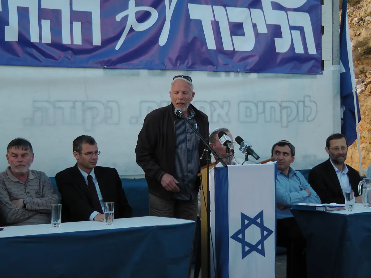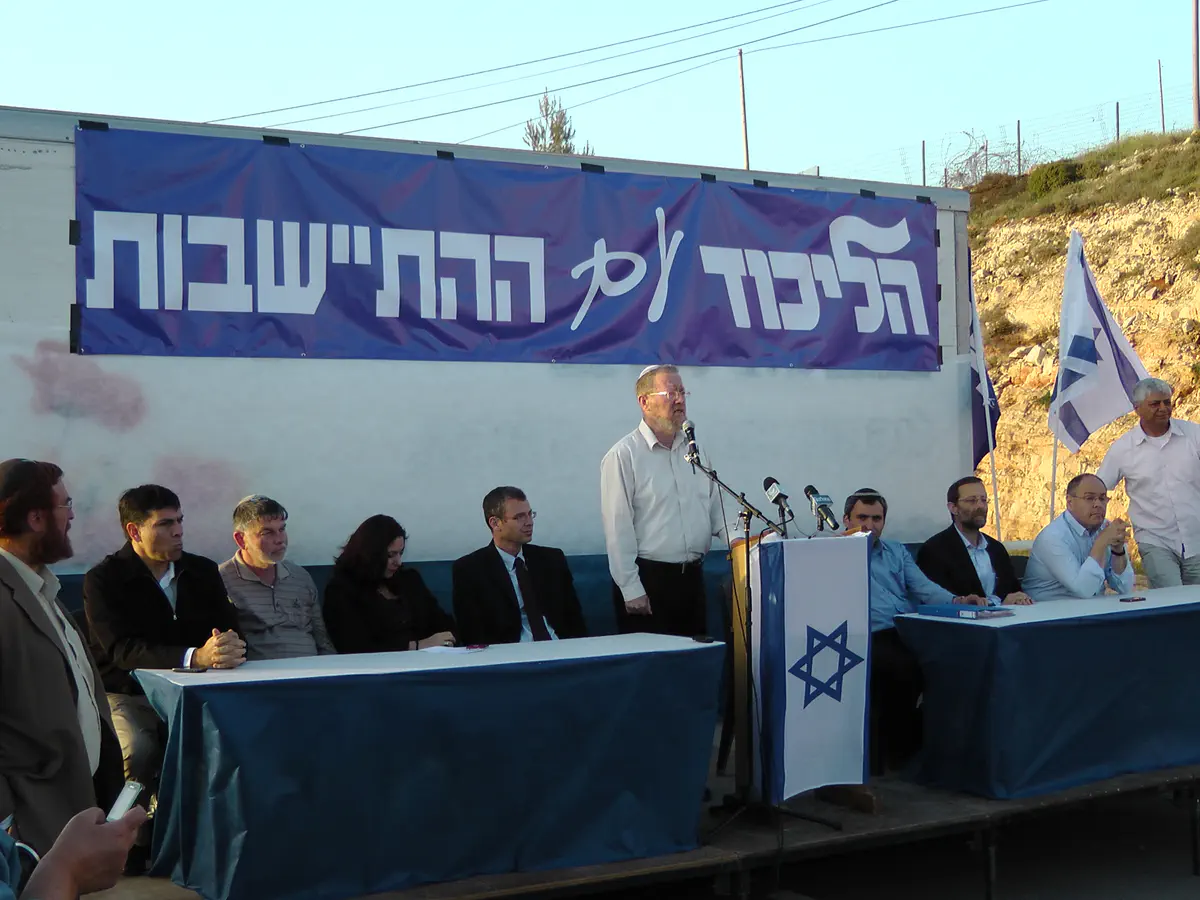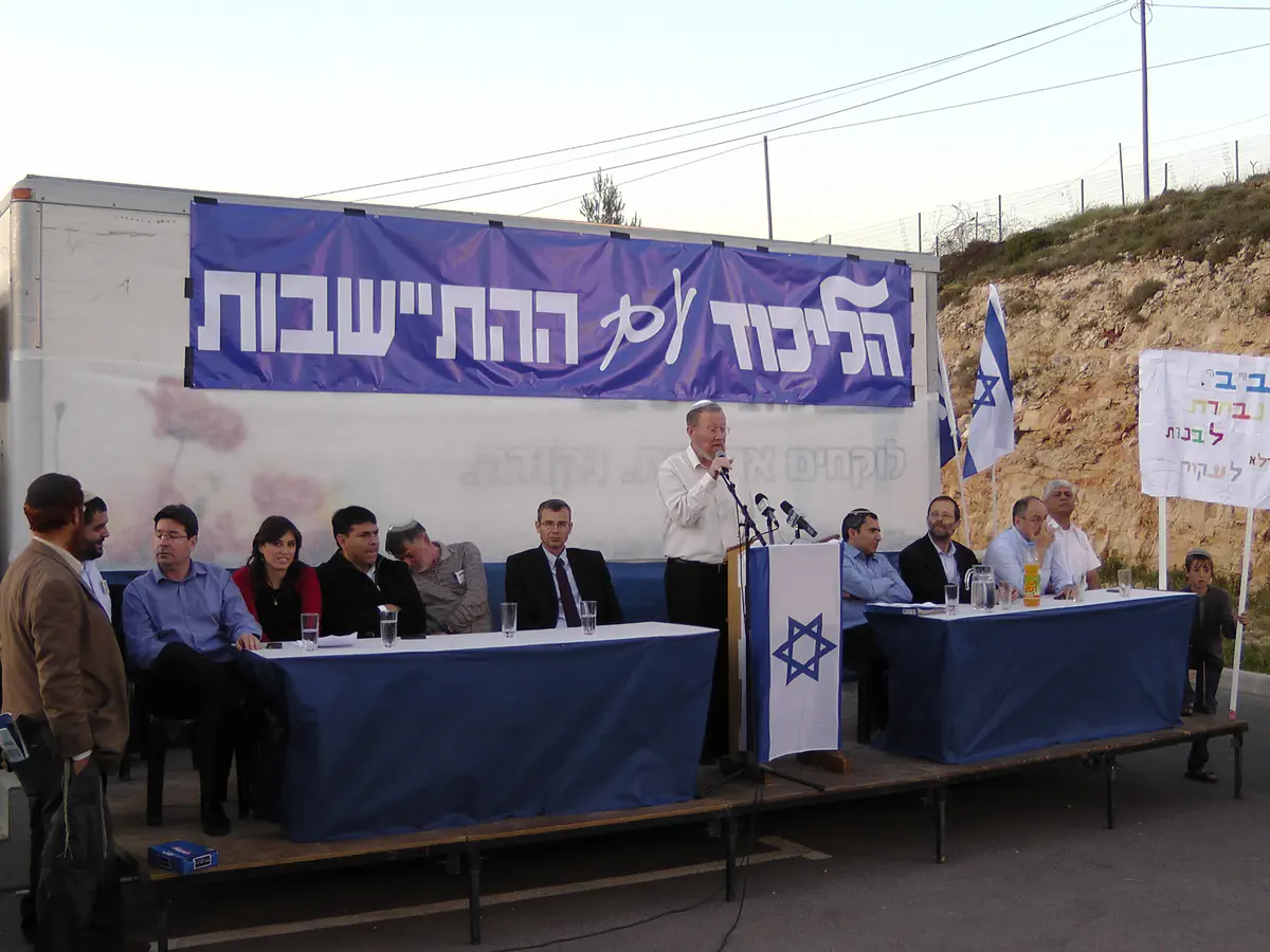 כנס של חברי מרכז ליכוד התקיים הערב (ראשון) בשכונת האולפנה בבית אל, אשר חרב ההרס מתנוססת מעל ראשה.