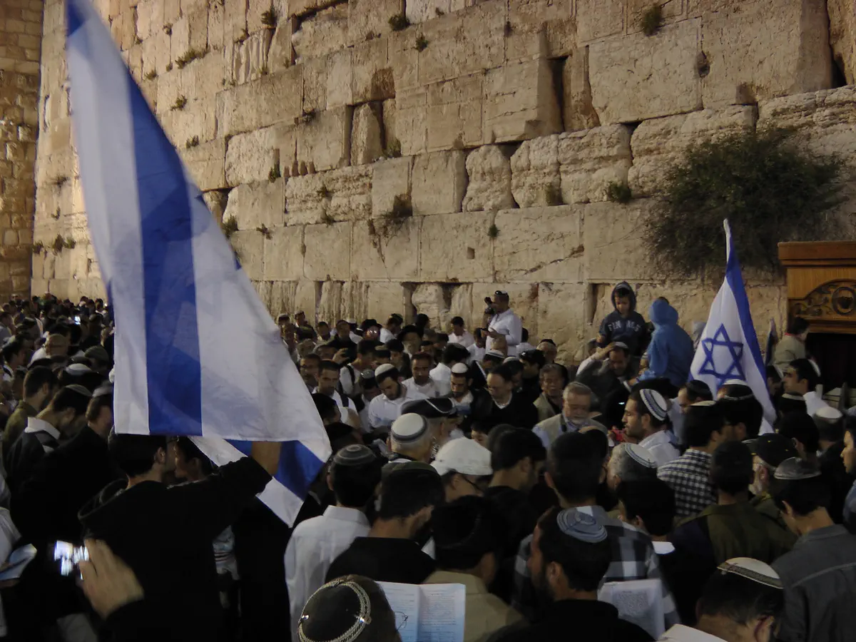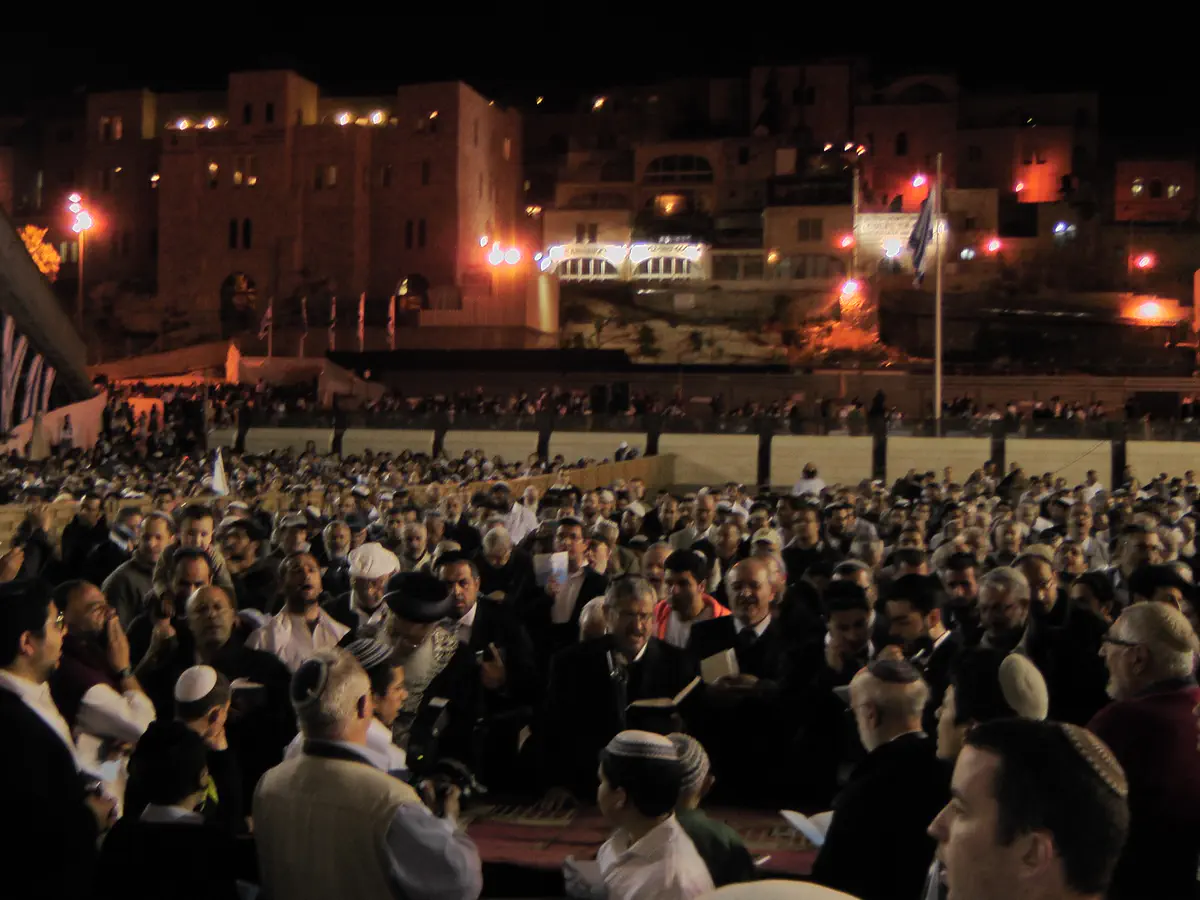 המונים גדשו הערב (רביעי) את רחבת הכותל המערבי וקיימו תפילה חגיגית לכבוד יום העצמאות ה-64 של מדינת ישראל.