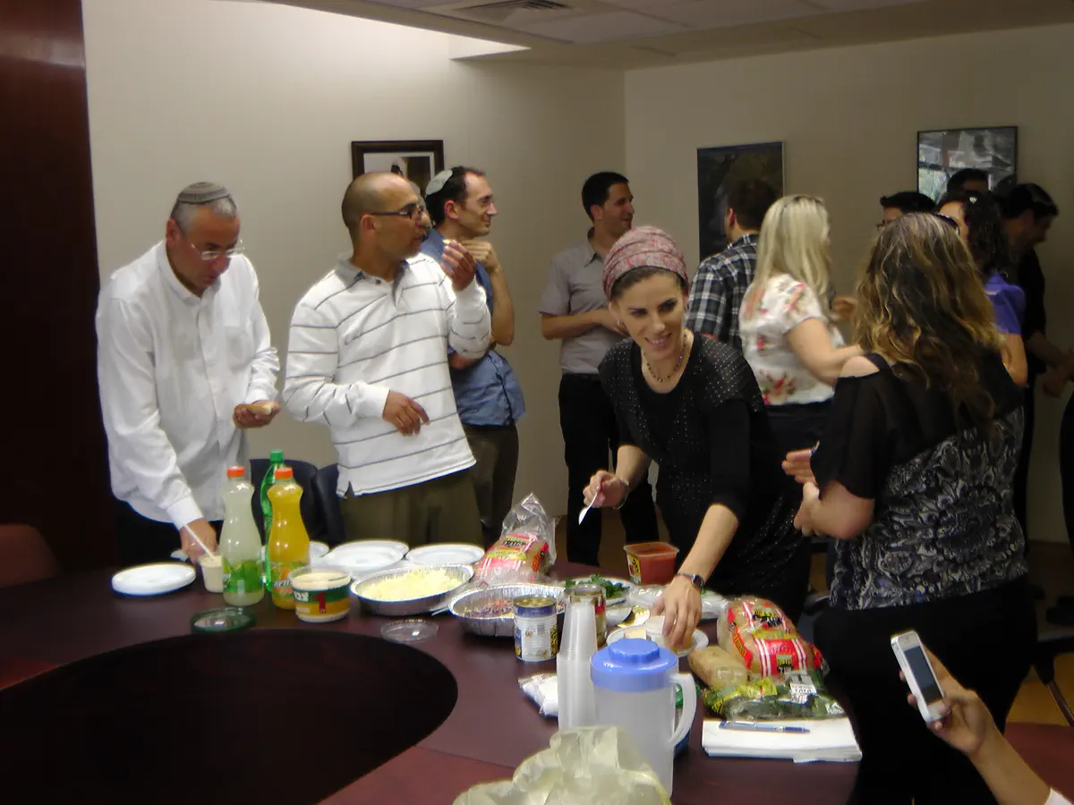 העוזרים התכנסו בשעות הצהריים, באחד מחדרי הסיעות בכנסת, והשביעו את רעבונם בארוחה שכללה: ,לחם, חומוס וסלטים, קרקרים, חמוצים, טונה ושתיה קלה.