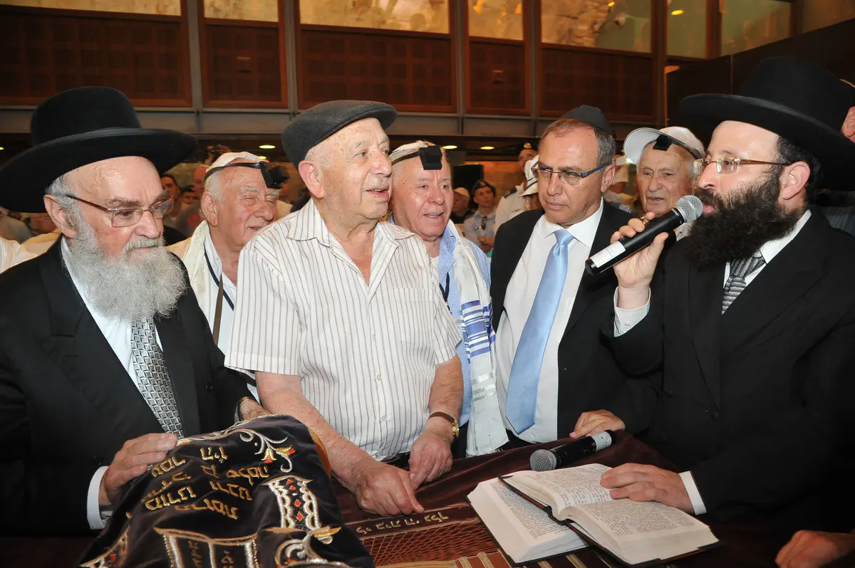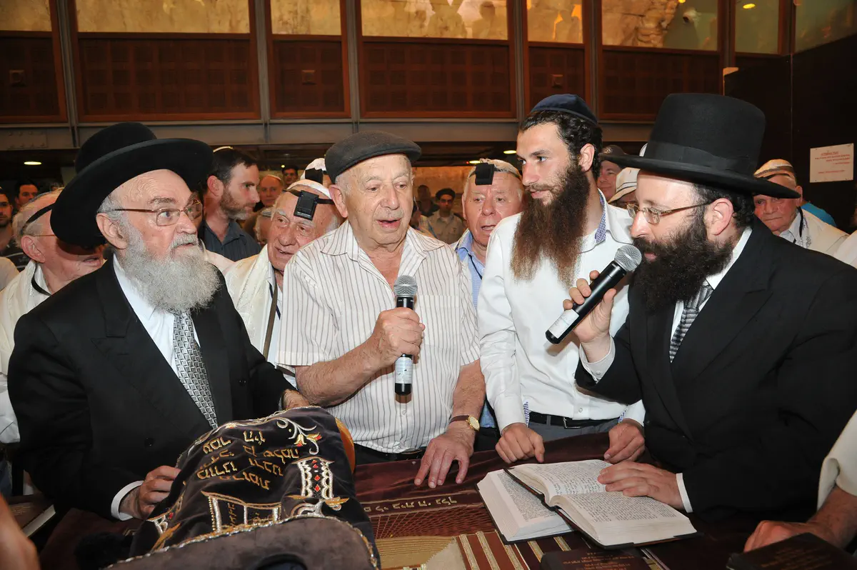 לאחר הנחת התפילין על ידיהם של ניצולי השואה אשר לרובם ישנם מספרים על ידיהם, והשמעת סיפורי הזוועה של כל ניצול, יצאו חתני המצוות בראשות רב הכותל המערבי - הרב שמואל רבינוביץ, רב העיר גבעתיים - הרב יוסף גליקסברג וראש העיר גבעתיים - ראובן בן-שחר, לרחבת התפילה כשהם מלווים בשירה על ידי עשרות נערים, חיילים ומתנדבים, ועלו לתורה כמו כל ילד בר מצוה.