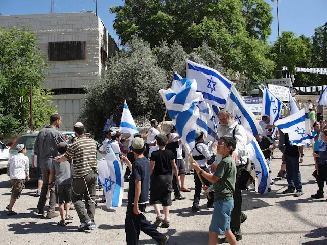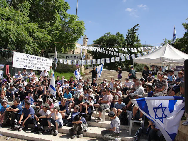 בסיום התפילה פרצו המבקרים בריקוד דגלים בסמוך לבית המכפלה בתביעה לאפשר ליהודים לחזור לבית.