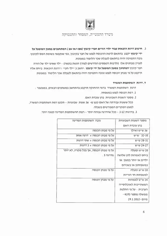 יש לציין כי כל דרגה שמתווספת לאם משמעותה - הפחתה בסבסוד על ידי משרד התמ"ת.
