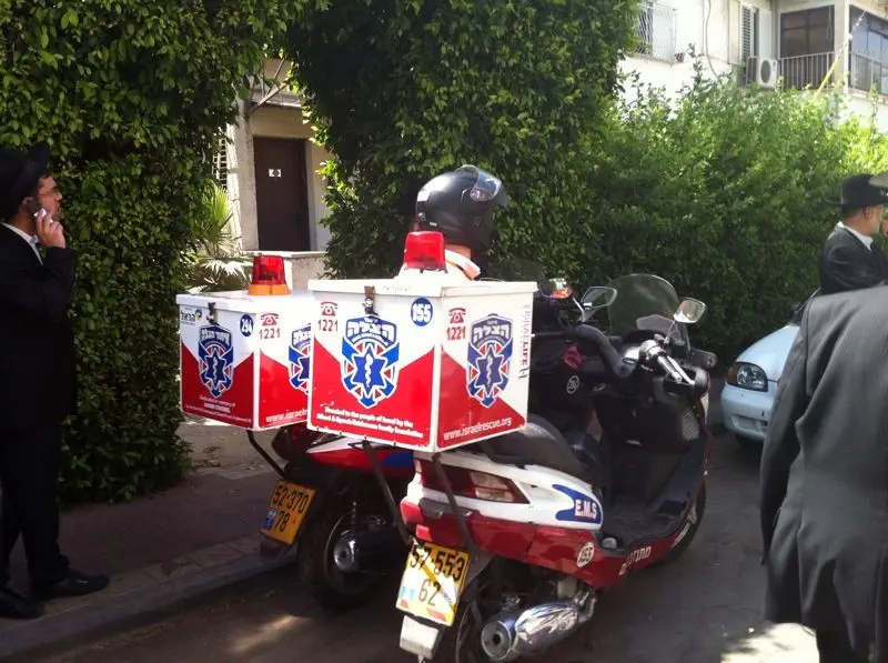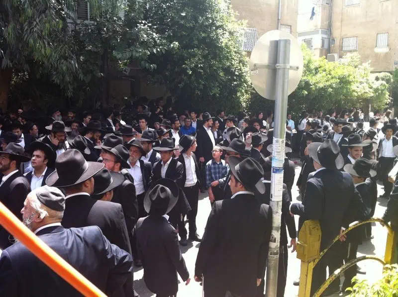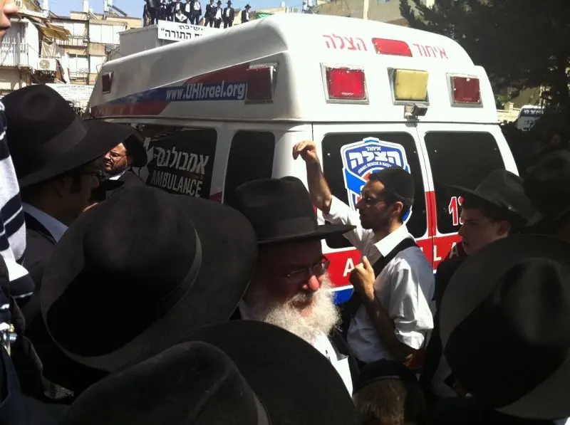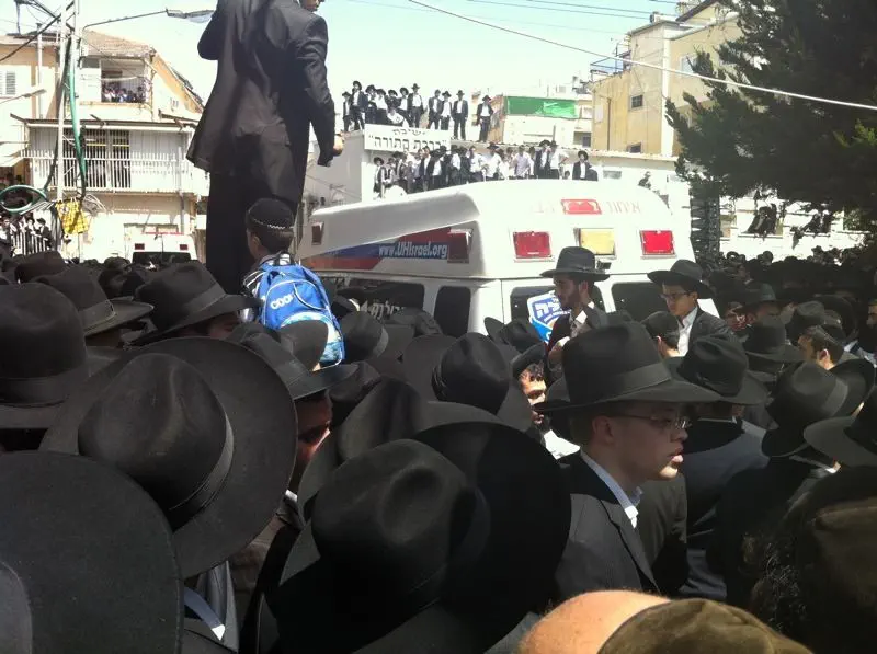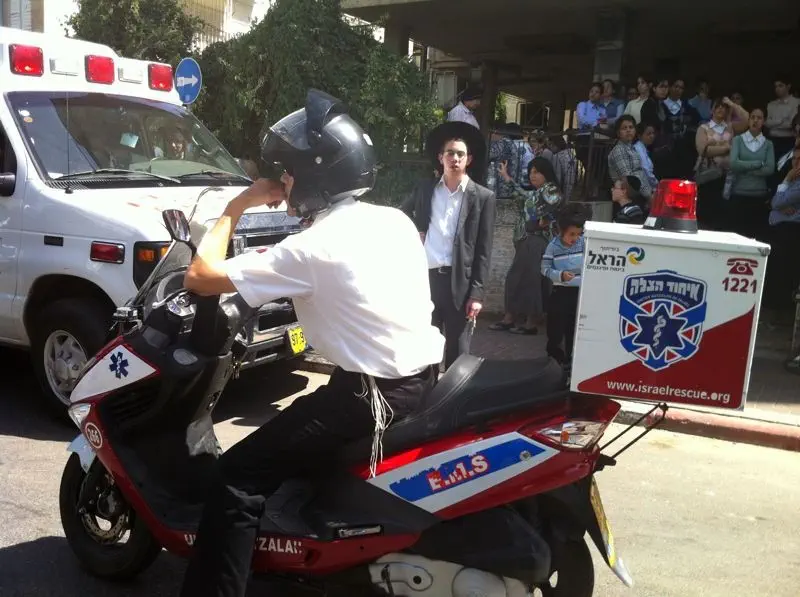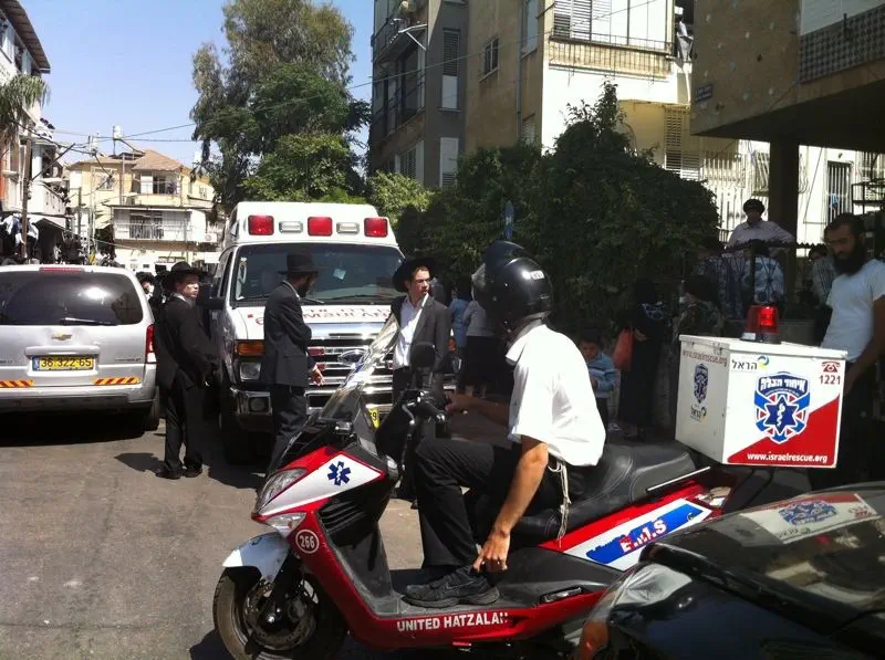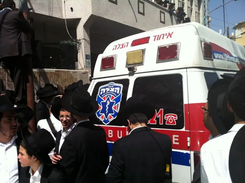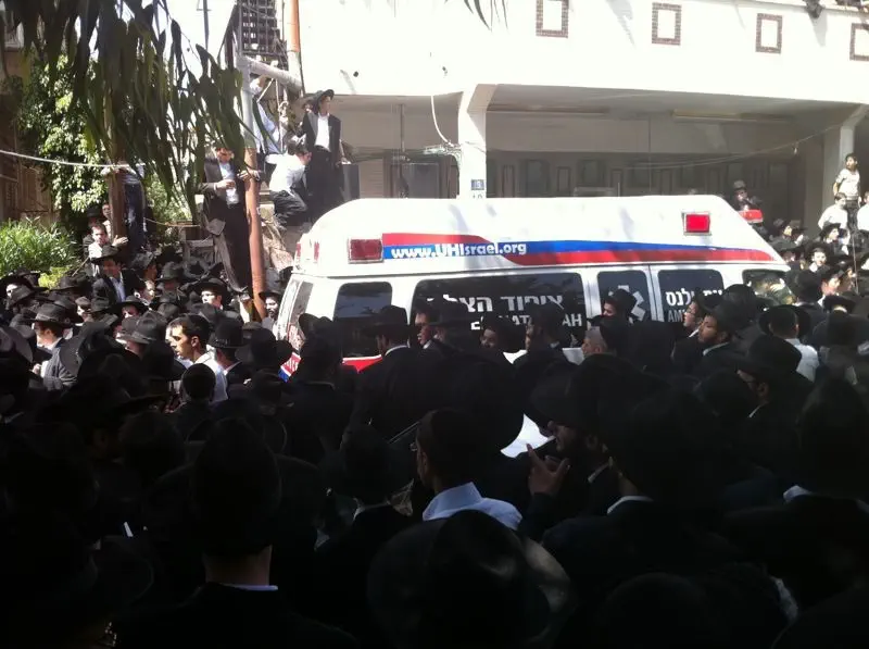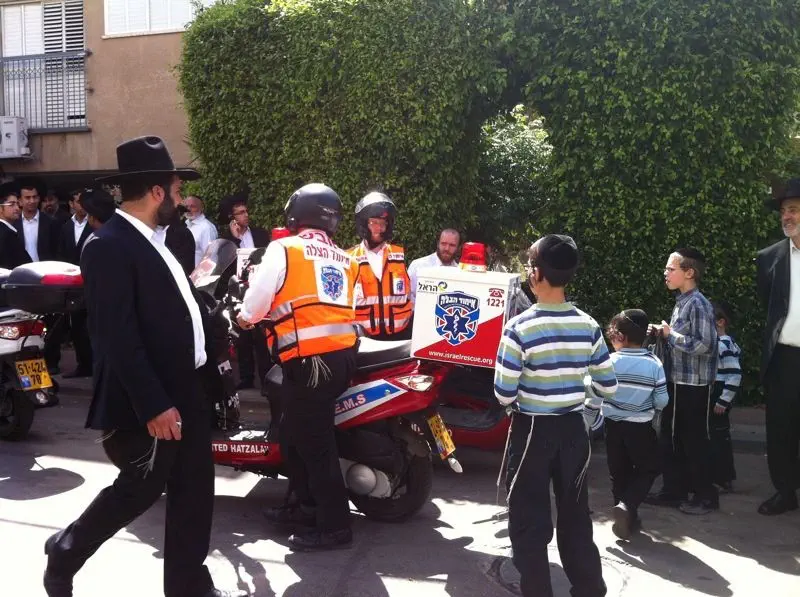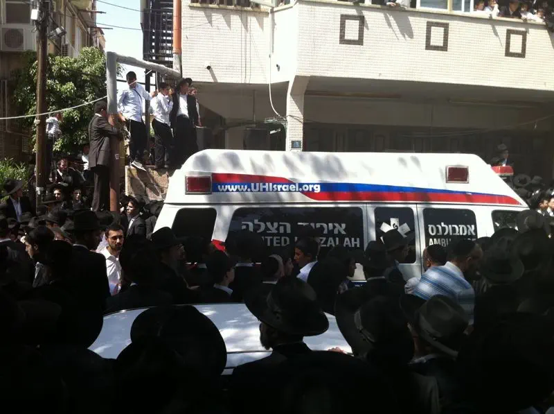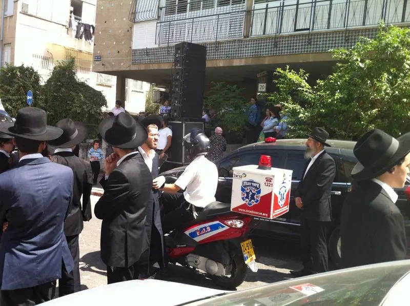 חובשי 'איחוד הצלה - בני ברק' מאבטחים את מסע הלוויה ומחלקים שתייה להמונים. שרגא כהן צלם "חדשות 24" מגיש תיעוד ראשוני.