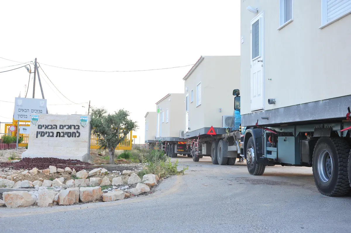 ממשרד הביטחון נמסר כי שש קראווילות הועברו לשכונה הזמנית המוקמת בחטיבת בנימין למפוני גבעת האולפנה בבית אל על-גבי 12 משאיות סמיטריילר.אנשי אגף אמו"ן (מבצעים לוגיסטיים ונכסים) ואגף הבינוי במשרד הביטחון החלו בהצבתם.