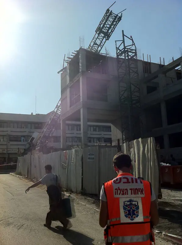 מנוף קרס אחר הצהריים (שני) באתר בניה ברחוב לוי אשכול ברעננה.