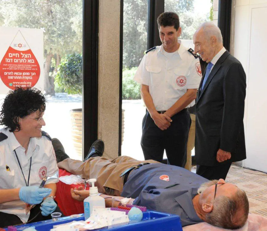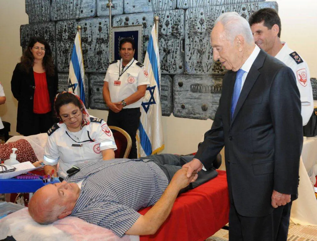 במהלך התרמת הדם המיוחדת שנערכה בבית הנשיא, בירך הנשיא פרס את העוסקים במלאכה וסיפר "כששאלו את דוד בן גוריון מה היא תמצית היהדות הוא השיב 'ואהבת לרעת כמוך'. זוהי תמצית היהדות - הצלת נפש, הצלת חיים. אני מודה לכם שאתם עושים עבודה נהדרת. זו עבודה שמחייבת עמידה יומיומית על המשמר. זה שירות חיוני, זה שירות אנושי, זה שירות נשגב. תודה לכם".