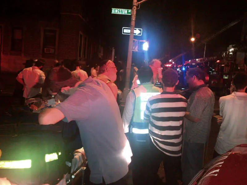 שריפה גדולה פרצה בבניין מגורים בשכונת קראוון הייטס בניו יורק. תושבי הבניין, רובם הגדול יהודים, נחלצו ללא פגע וכוחות הכיבוי פועלים לכיבוי האש.