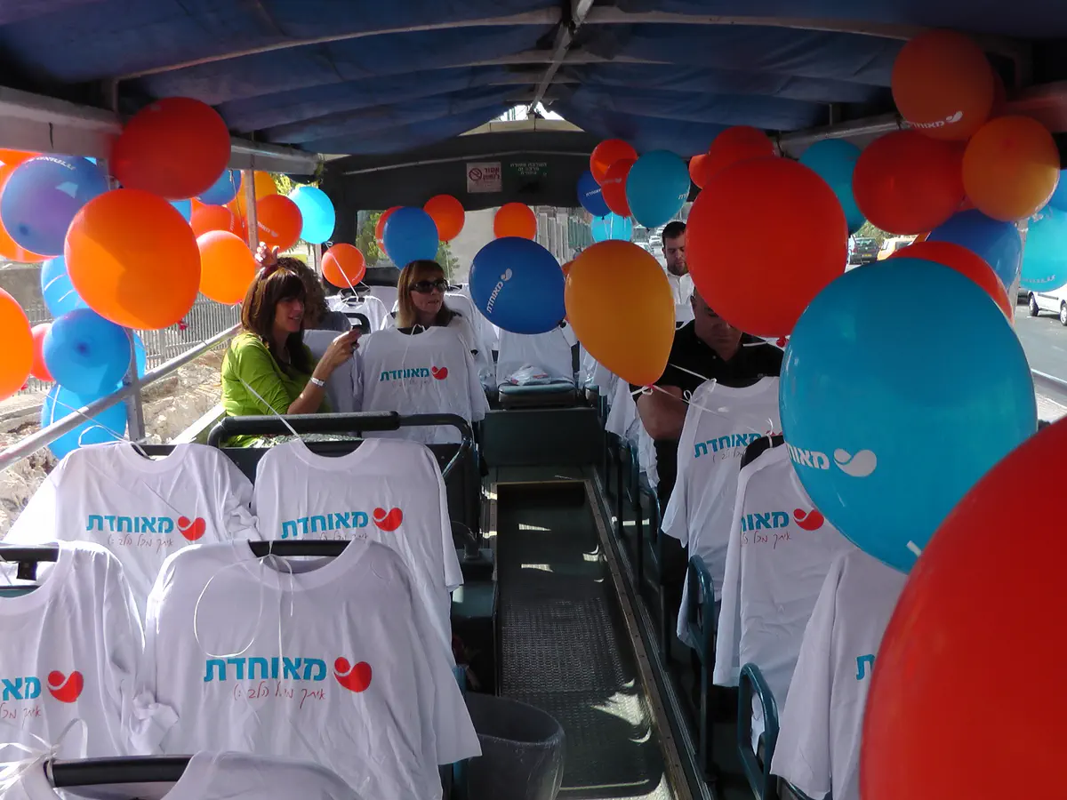 בסיור מיוחד שהתקיים היום (ראשון) סביב ירושלים באוטובוס דו קומתי של חברת אגד ולצלילי שירי ירושלים, סיימו היום בכירי קופת חולים מאוחדת את הכנת הקמפיין "מאוחדת , כבר חלק מירושלים".