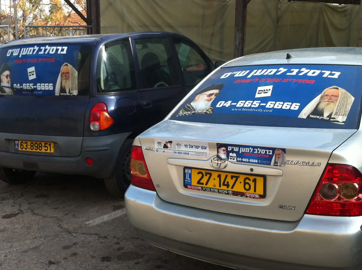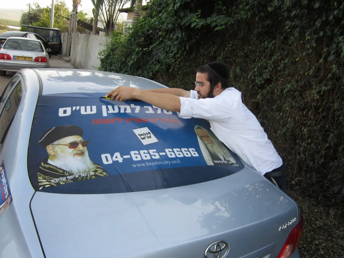 היום לקחו החסידים יוזמה והדביקו על מאות רכבים של פעילים מדבקות ענק עם הכיתוב 'ברסלב למען ש"ס', תמונתו של הרב עובדיה יוסף, ומספר טלפון של המטה אותו הם מפעילים.